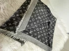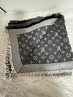 Louis Vuitton Monogram Wrap/Shawl Square Scarf. Preowned. Used. No Thread Pull. No Hole. Color Grey/Black. Signs of wear. Measures 56 By 57 Inches. Still In Perfect Condition.