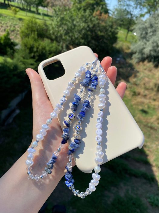 Sodalite Gemstone Phone Charm,Evil Eye Personalized Phone Strap,Natural Stone Beaded Phone Chain,Phone Jewelry,Phone Accessory” Cancel reply