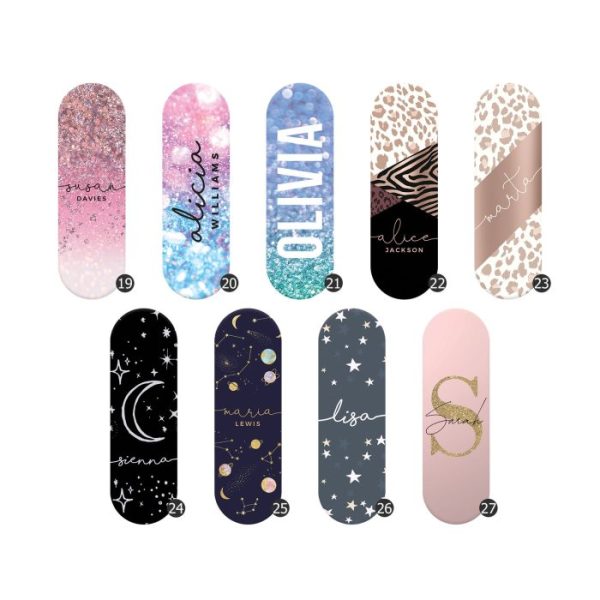 Personalise your finger strap phone grip holder with your name, initials or any text you want.